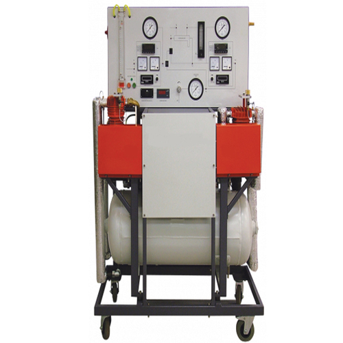 A measuring nozzle at the intake vessel is used to determine the suction volumetric flow rate. Sensors record the pressures and temperatures in front of and behind the compressor. The pressure is also displayed on manometers in the tanks. The measured values are read from digital displays and can be transmitted simultaneously via USB directly to a PC, where they can be analyzed using the software included.